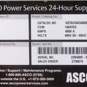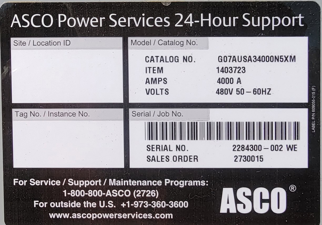 Tags: 4000A, 480V, 7000 Series, ASCO, Automatic Transfer Switch, NEMA 3R