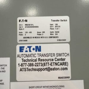 Tags: 3 Pole, 600A, Automatic Transfer Switch, EATON