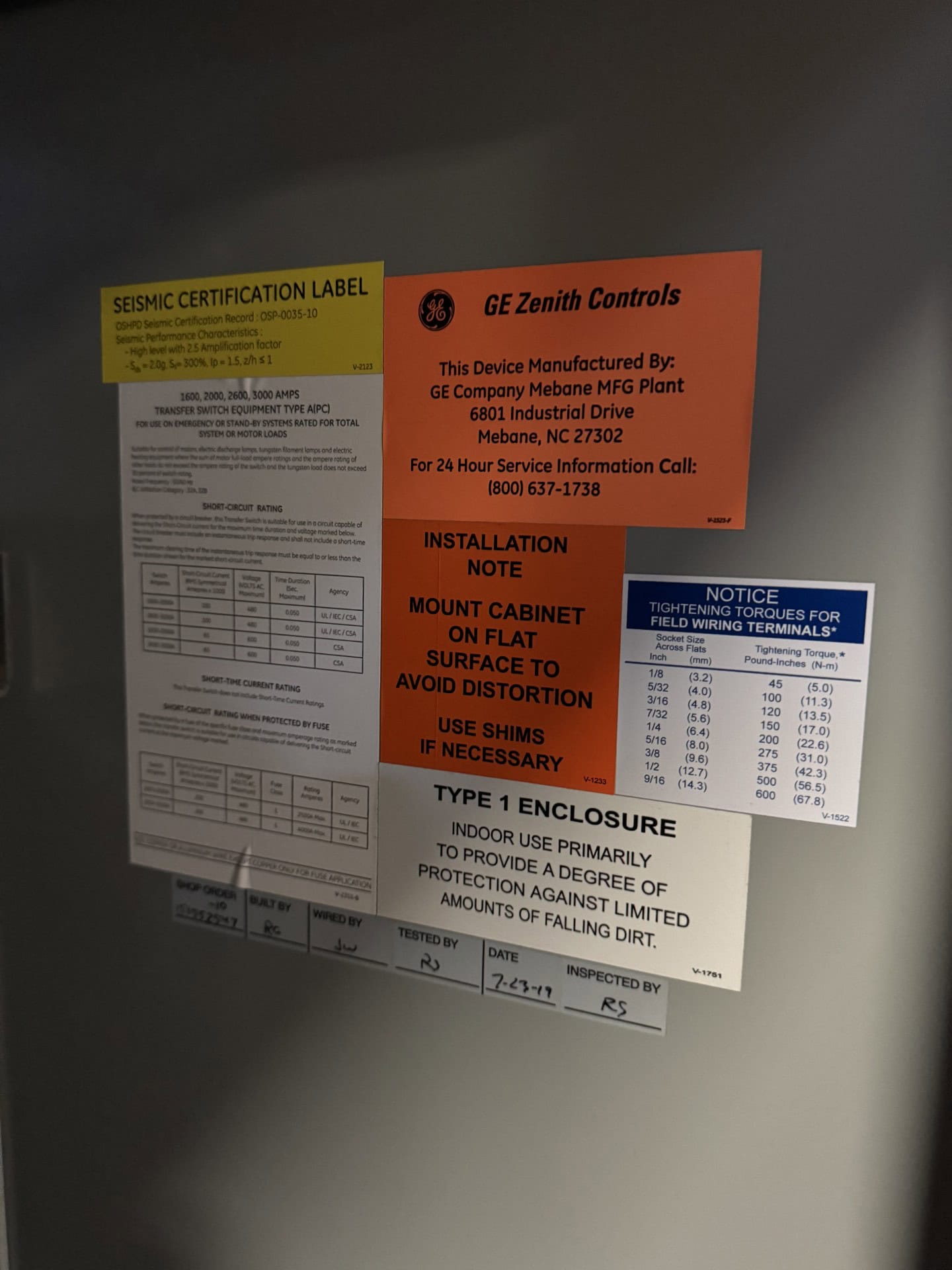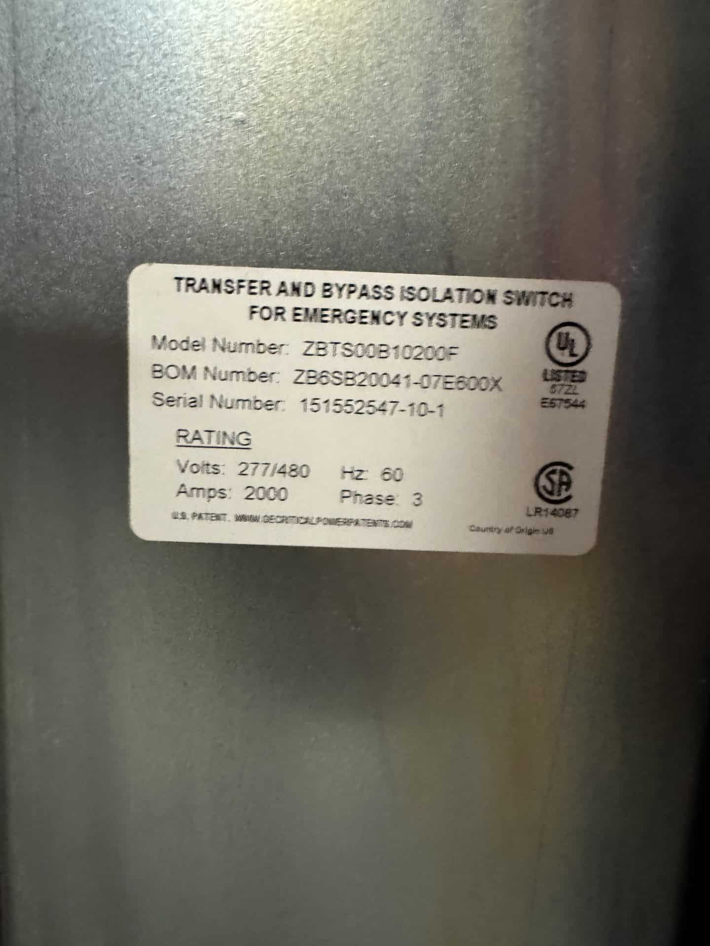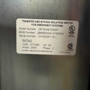 Tags: 2000A, 480V, Automatic Transfer Switch, GE Zenith